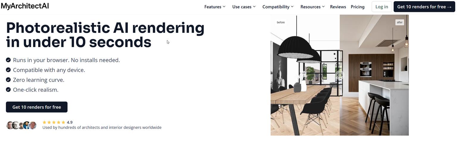 MyArchitectAI is a web generator that stands out for generous free use and simplicity. It's quintessential "best ai for exterior home design free" at the ideation stage.