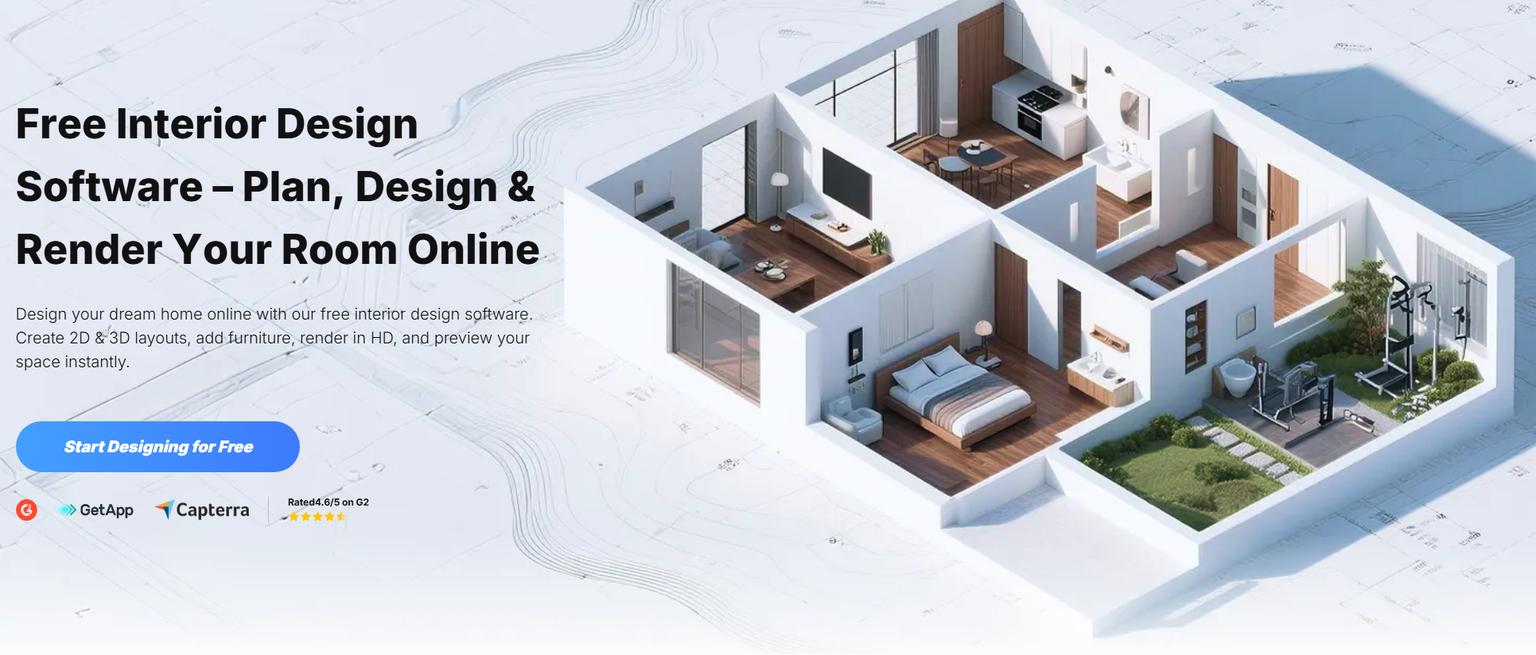 Expect complete 2D/3D planning across the property (landscape included). While its AI tends to lean interior (AI Designer & Smart Wizard, floor plan recognition), the key advantage is holistic modeling: you can shape the outside form, garden areas, and circulation rather than only restyling a photo. Note that roof planning tools are basic and offer limited customization.