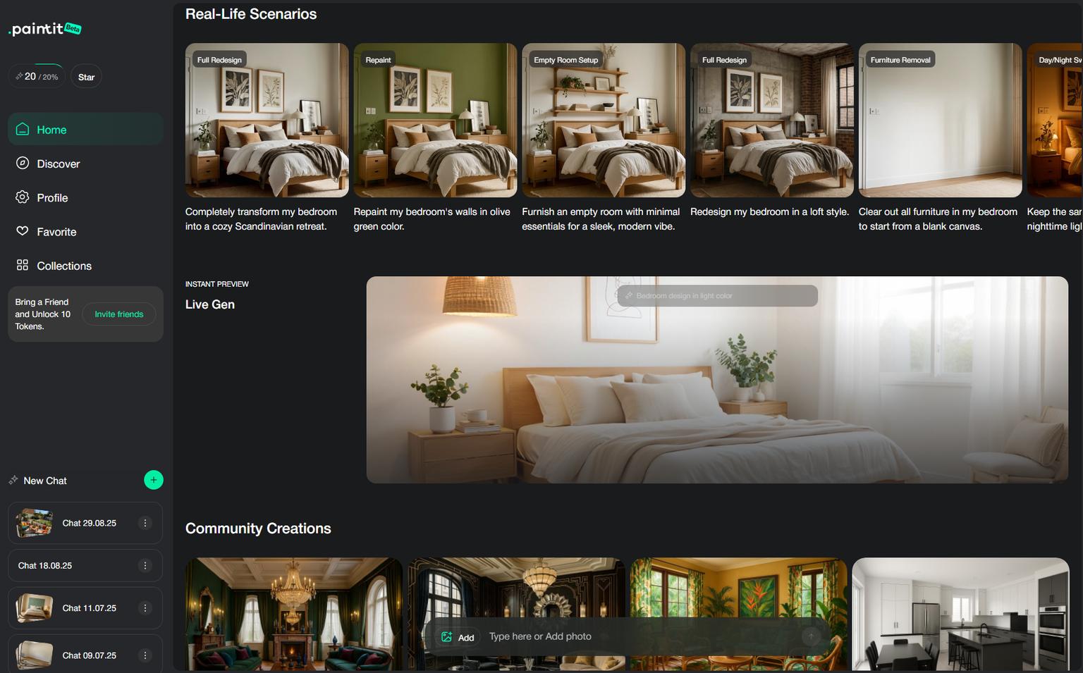 Paintit.ai: quick, styled visuals for presentations and real estate marketing; particularly effective if interiors and exteriors are being aligned (leverage Paintit.ai's interior strengths for a cohesive narrative while using its exterior tool for facade options).