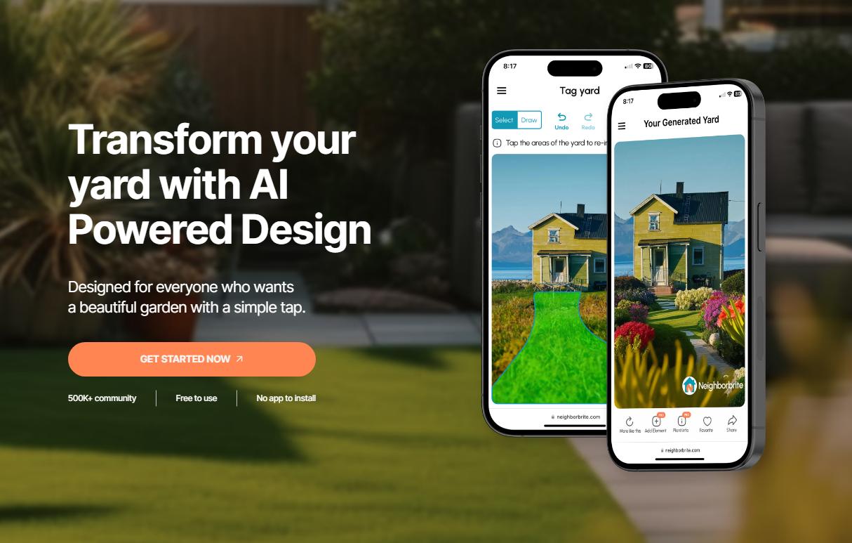 "If you need pure landscape inspiration..." Choose Neighborbrite for its zero learning curve and ability to instantly generate dozens of stylistic concepts from a single photo.