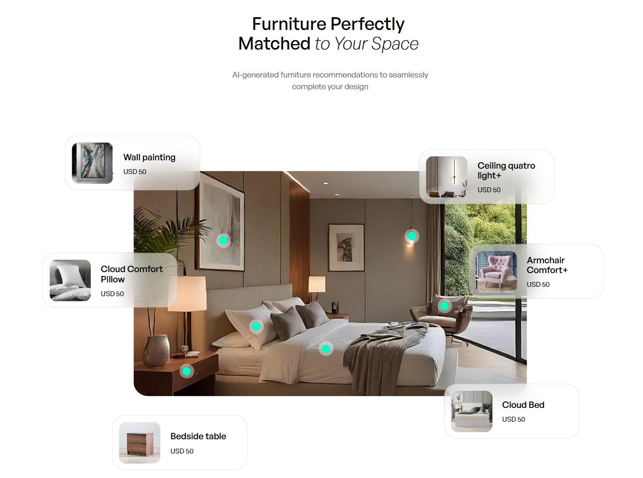 Seamlessness & Commerce: The defining advantage is its ability to suggest real furniture recommendations (SKUs), bridging the gap between digital design and real-world procurement.