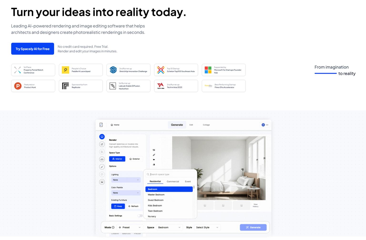 Use Case: While RoomGPT delivers fast, stylized visuals, Spacely AI provides visuals with superior quality and accuracy. The platform's versatility allows professionals to input photos, simple sketches, or even white 3D renderings.