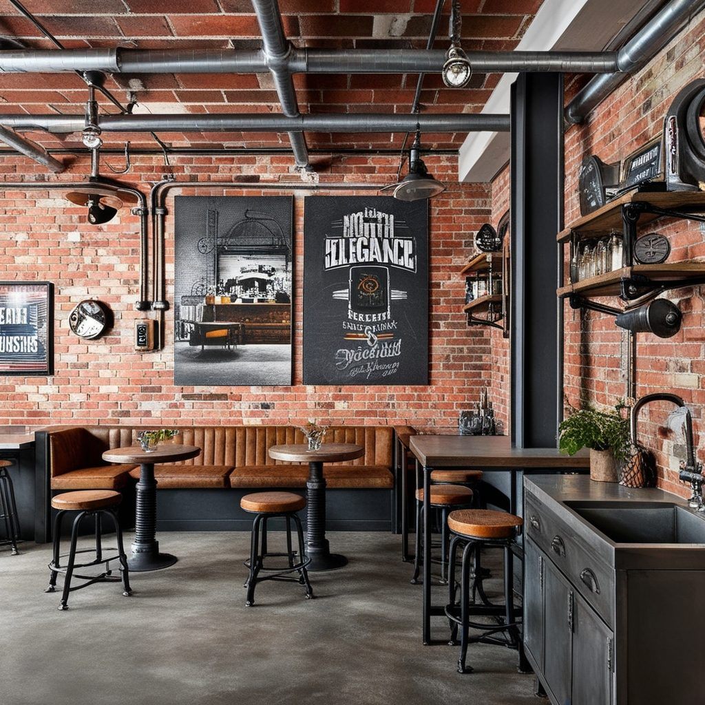 2. Industrial Elegance: To achieve a modern twist incorporate an industrial design that showcases exposed brick walls alongside metal fixtures and vintage decor elements. This style infuses spaces with distinct personality and a sharp energy that captures the interest of youthful customers.