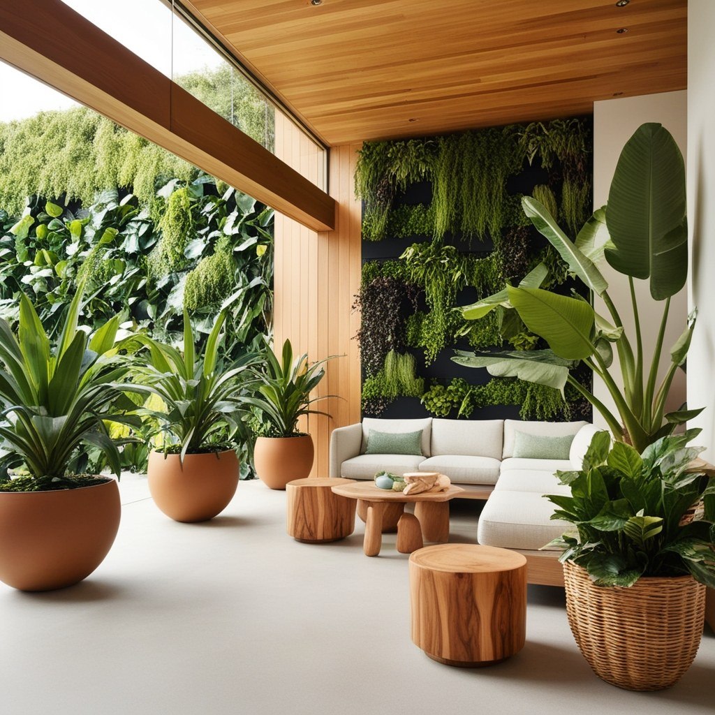 4. Botanical Bliss: Integrate outdoor elements into your space by adding greenery and natural components. Living walls combined with large potted plants and natural wood finishes transform spaces into refreshing rejuvenating environments.